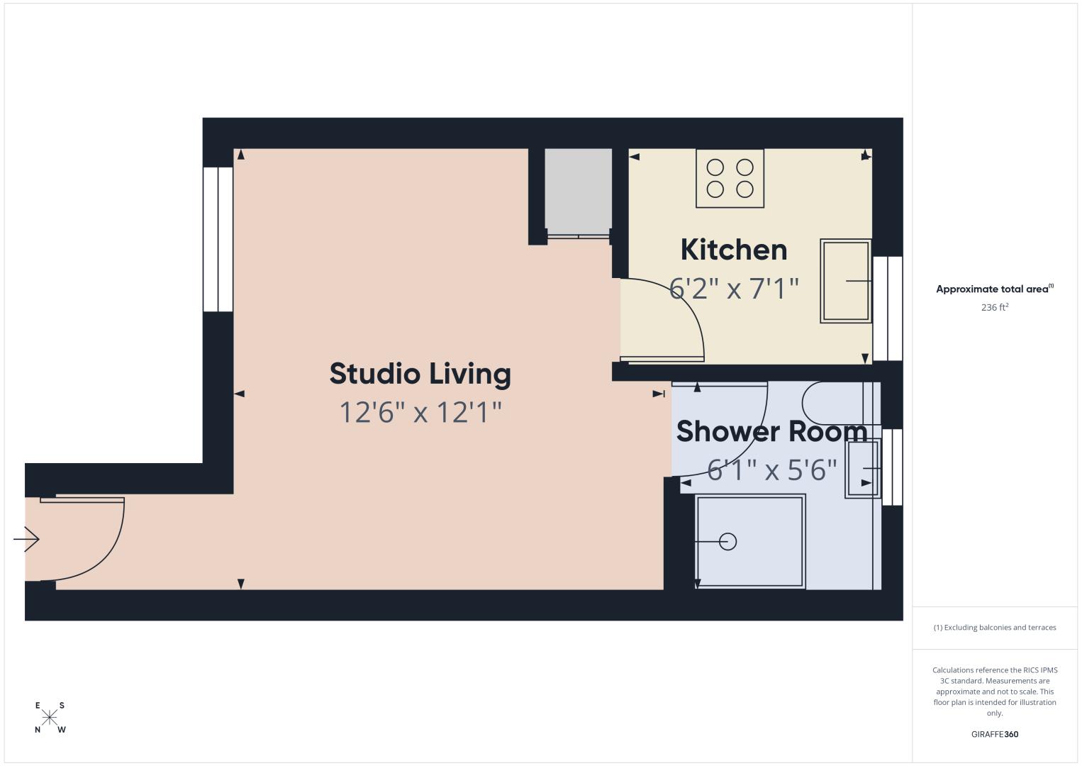 The apartment has been fully modernised throughout and is presented to a high standard. The open-plan living and sleeping area has been thoughtfully designed to maximise space and light, creating a comfortable and contemporary environment suitable for both relaxing and entertaining.