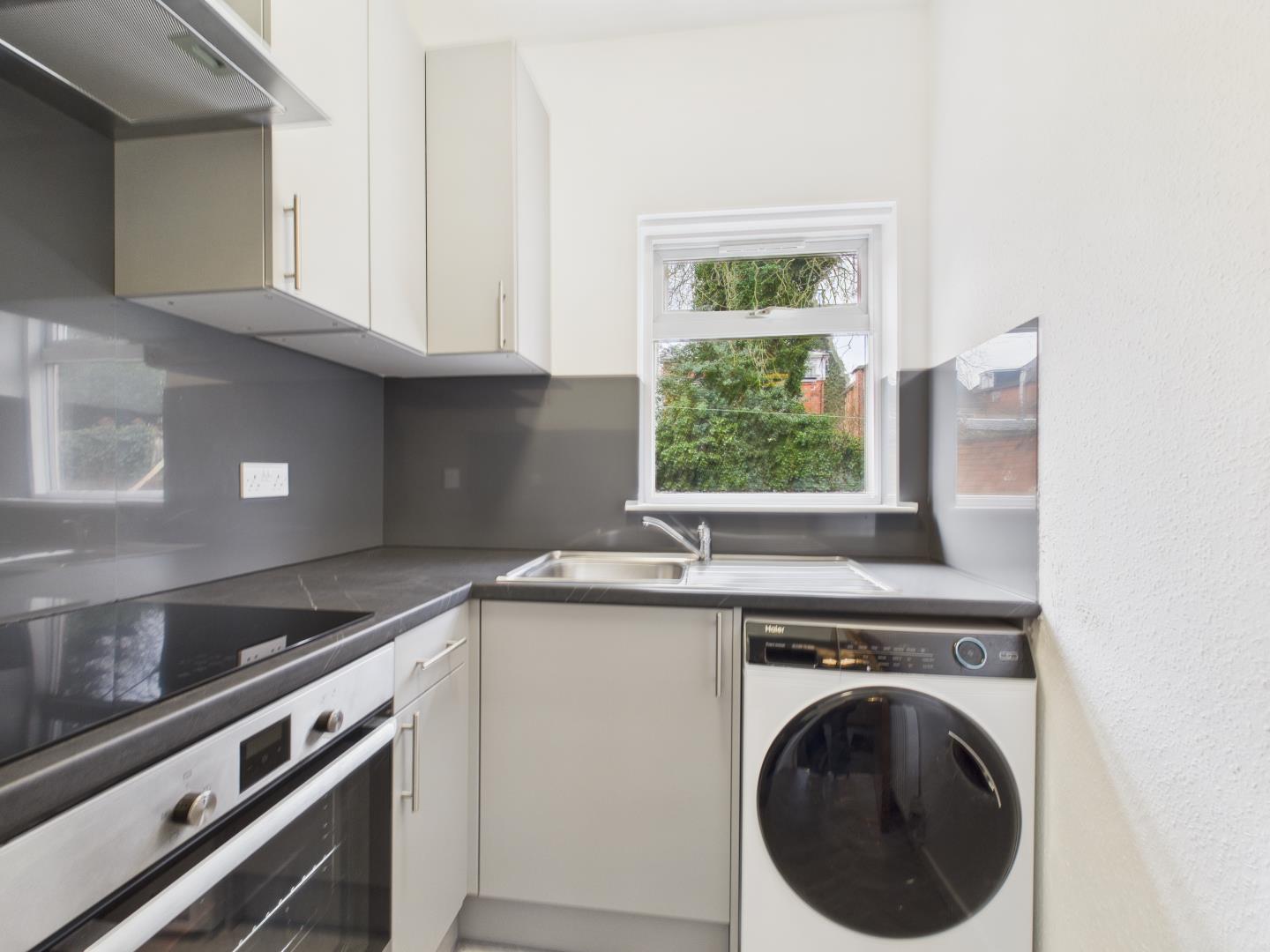 The newly fitted kitchen is sleek and modern, complete with integrated white goods, offering a practical yet stylish setup ideal for everyday living. Complementing this is the ultra-modern shower room, finished in a contemporary palette with splash back detailing, providing a sharp, high-end feel.