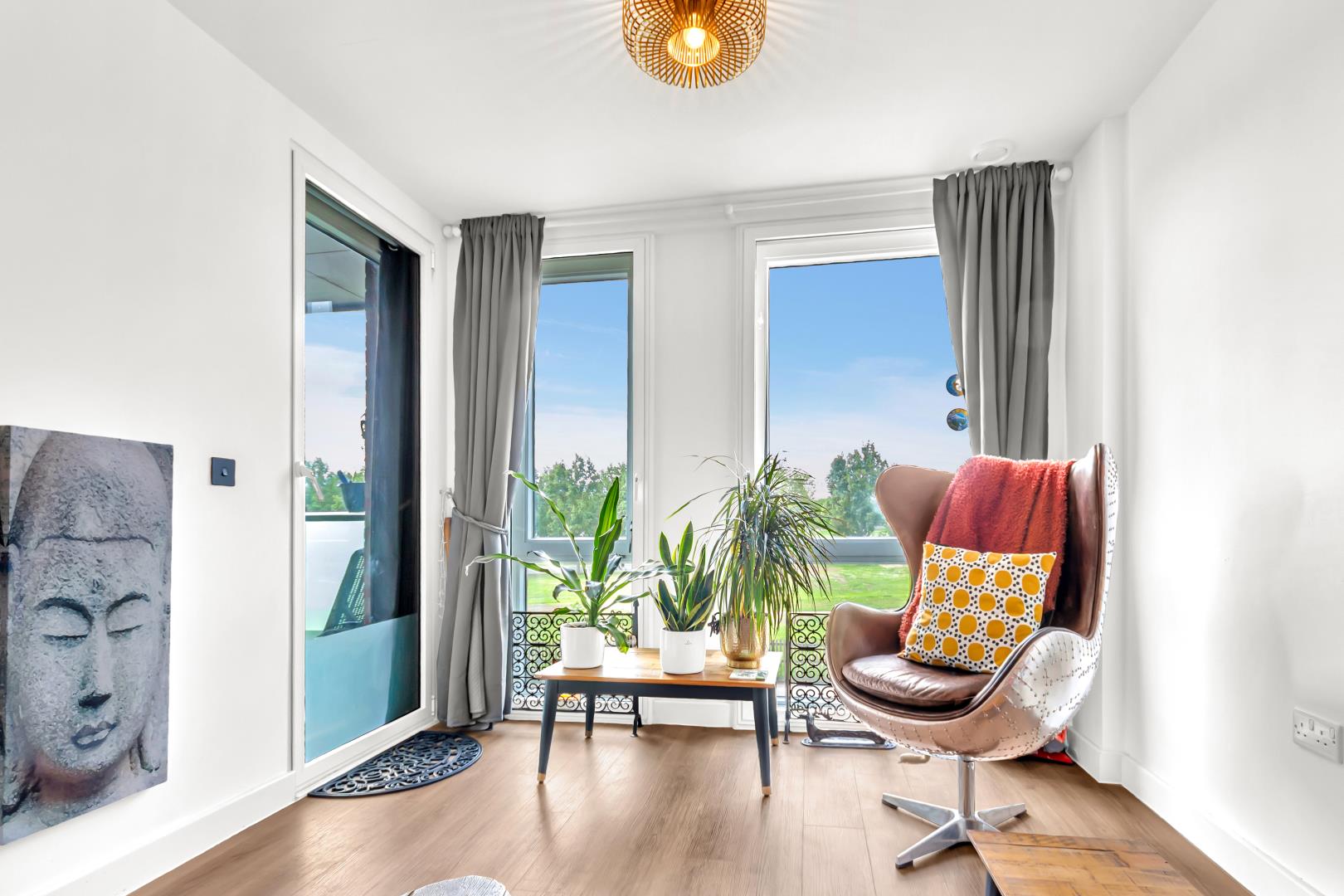 Ahead of the hallway are the three bedrooms. The master bedroom far to the left has the most stunning view of Finsbury Park with two sound proof windows, doorway to the far right leading to the balcony and access to its own en suite which has a towel radiator, wall hanging vanity unit with mirror above and shower enclosure with power shower and a well sized glass/ sliding shower enclosure.