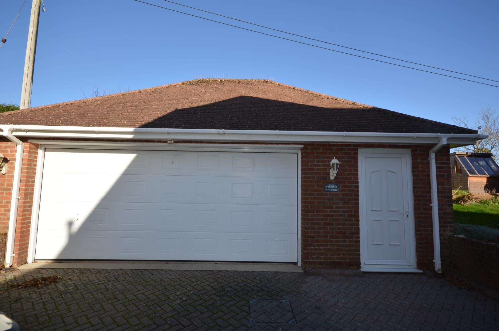 Outside; To the rear there is a large double garage and workshop. Large patio leading to raised lawn